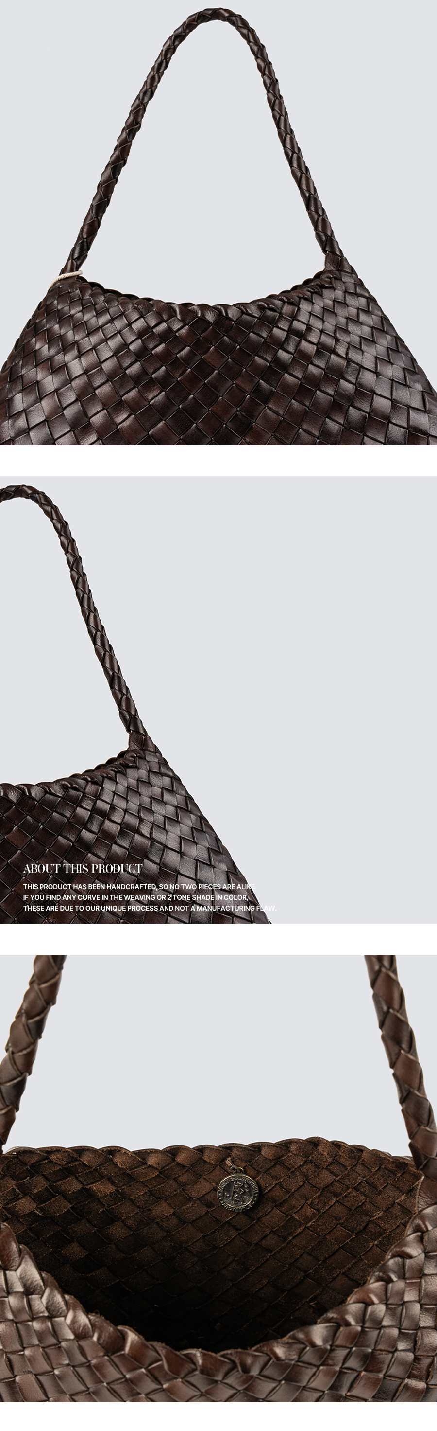 취급시 주의사항 습기 및 이염주의, 핸드메이드 상품으로 100% 버팔로 가죽 소재의 특성상 기계직조와는 다르게 위빙과 컬러, 크기가 균질하지 않을 수 있습니다.